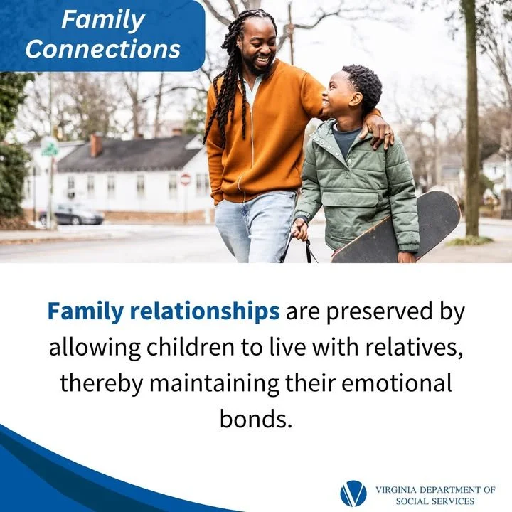 When a child is unable to live with their biological parents due to illness, incarceration, unstable housing, or abuse and neglect, they may be cared for by a relative or close family friend—such as a grandparent, aunt, or family friend. This arrangement, known as Kinship Care, helps children remain connected to their families and communities while providing the stability, safety, and love they need. In Virginia, Kinship Care ensures that children in need can stay with the people who know and care for them most.