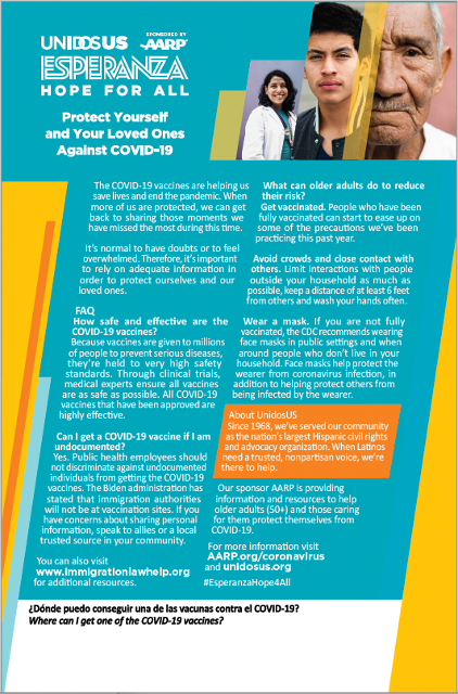 COVID-19 vaccine awareness and education among Latinos is one of the greatest public health challenges our country has ever faced. With the amount of disinformation surrounding the virus, many hard-to-reach audiences with limited access to quality healthcare and publicly available information needed reassurance that vaccine use would not result in negative health or financial repercussions. UnidosUS launched an education and awareness campaign backed by funding from several advocacy partners, including AARP, to disseminate culturally appropriate information on the COVID-19 vaccine. Sensis was brought on as UnidosUS’ key marketing partner to foster trust in the vaccine’s safety and efficacy to increase potential vaccine participation among all hard-to-reach Latinos in 2021. It was crucial that the effort placed a strong emphasis on older Latino adults as this demographic was the most vulnerable when the pandemic started.